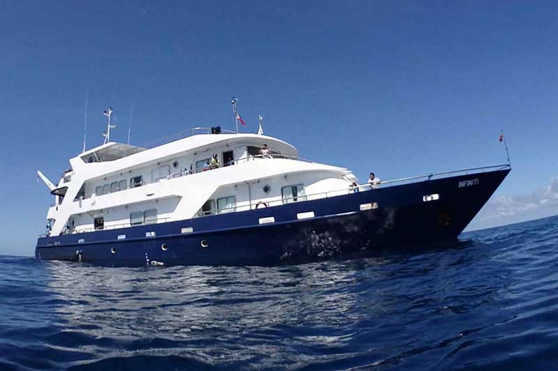 - The Infiniti is a 39-meter liveaboard offering 11 newly renovated, comfort-focused cabins. Each cabin has an en-suite bathroom with shower and either a large picture window or porthole. Freshly prepared meals and snacks are served in the indoor dining area.
